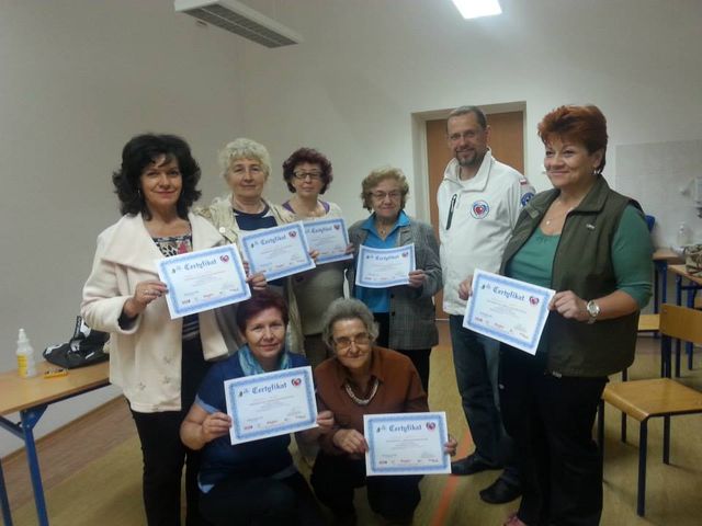 Wiedza praktyczna poparta została teorią na temat funkcjonowania Państwowego Systemu Ratownictwa w Polsce oraz właściwego wezwania karetki pogotowia na miejsce zdarzenia. Uczestnicy szkolenia z chęcią i ogromnym zaangażowaniem przyswajali wszelkie informacje, które mogą przyczynić się poprawy bezpieczeństwa w ich najbliższym otoczeniu. Po zakończeniu szkoleń seniorki i seniorzy z Ełku otrzymali certyfikaty ukończenia szkolenia z pierwszej pomocy.