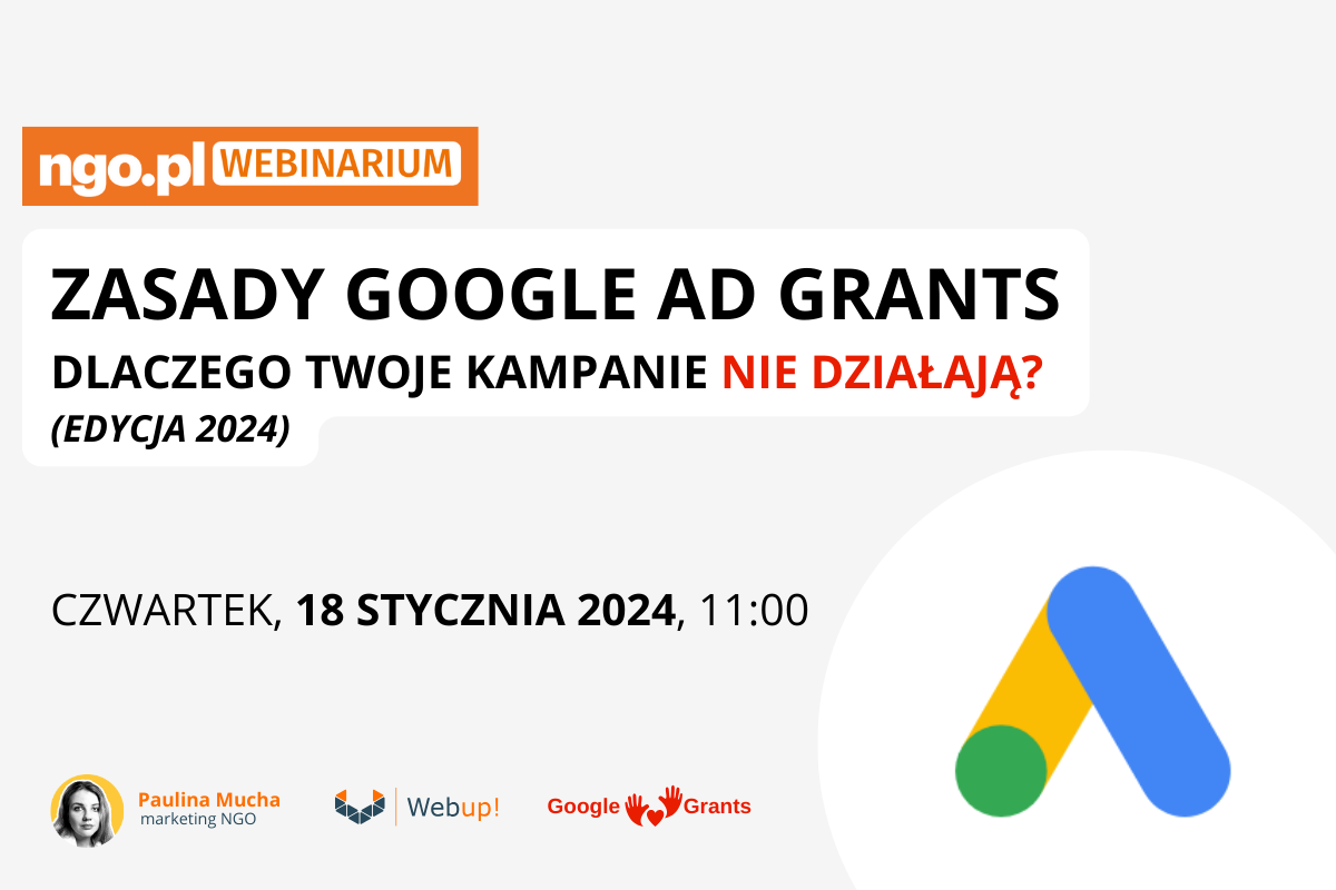 Zapraszamy na bezpłatne webinarium „Zasady Google Ad Grants. Dlaczego Twoje kampanie nie działają? (Edycja 2024)" [18 stycznia, godz. 11-12].