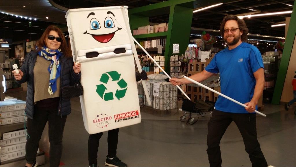 28 i 29 września w pięciu sklepach Leroy Merlin w Warszawie goście sklepów mogli spotkać wyjątkową grupę edukatorów - maskotki: Lodzię, Smartiego, Mr Mixa i bliźniaczki Batki, które edukowały najmłodszych i najstarszych, dlaczego należy segregować i zbierać selektywnie elektroodpady. To była kolejna edycja akcji pt. "Świeć przykładem", której gospodarzem są warszawskie sklepy Leroy Merlin.