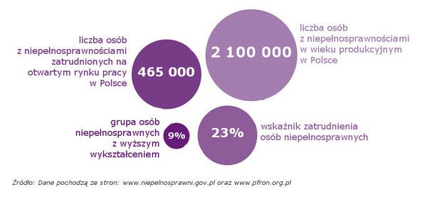 Osoby z niepełnosprawnościami to w Polsce nadal ułamek zatrudnionych na otwartym rynku pracy - obecnie to 465 tys. osób z 2,1mln populacji z niepełnosprawnościami w wieku produkcyjnym. Głównymi barierami związanymi z otwarciem się pracodawców na różnorodnych pracowników pozostają niewiedza i obawa przed nieznanym oraz niewielka popularność narzędzi umożliwiających ich zatrudnianie.