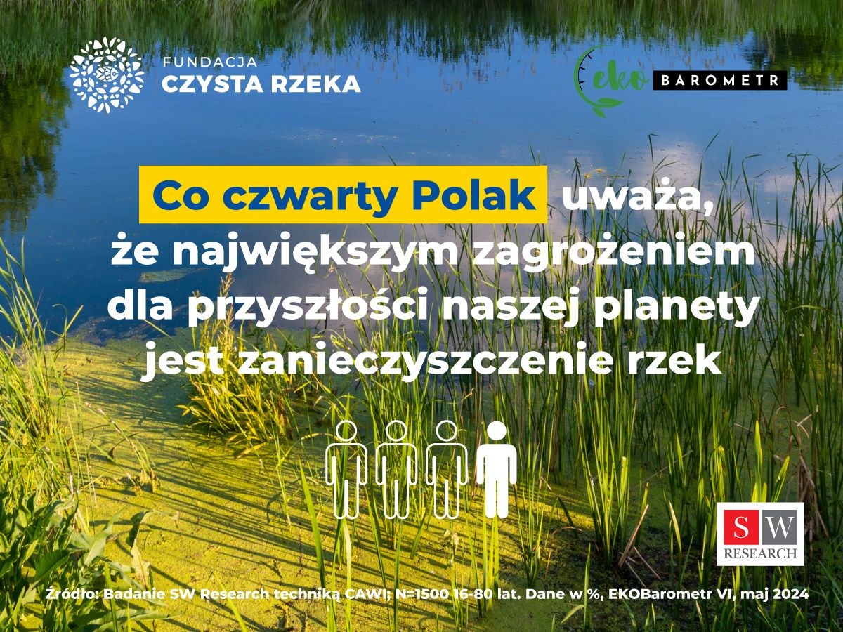 Co czwarty z nas uważa, że to właśnie zanieczyszczenie rzek stanowi największe zagrożenie dla przyszłości naszej planety. To wyniki najnowszej fali badania EKObarometr, zrealizowanego przez SW Research wspólnie z Fundacją Czysta Rzeka. 5 czerwca obchodzimy Światowy Dzień Ochrony Środowiska, więc jest to dobry pretekst, by zweryfikować nasze podejście do ekologii.