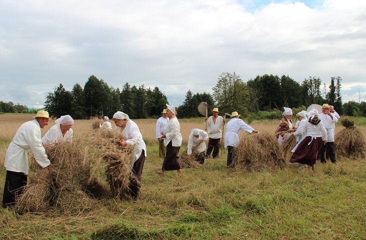 Przybyłych na inscenizację żniwną witali rolnicy w tradycyjnych strojach oraz polskie i ukraińskie ludowe przyśpiewki. Całość rozpoczęła modlitwa odmówiona po polsku i ukraińsku przez Stefanię Urbańską i Zbigniewa Mieruńskiego.