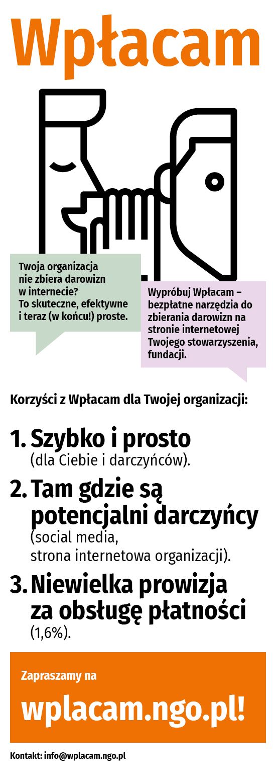 Skorzystaj z usługi ngo.pl, która ułatwia pozyskiwanie Darczyńców w internecie. Wejdź na wplacam.ngo.pl!