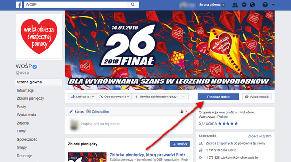 Od jakiegoś czasu Facebook stara się aktywnie wspierać organizacje, dając im dostęp do specjalnych narzędzi na portalu. Dobrym przykładem może być możliwość utworzenia specjalnego przycisku CTA (call to action), który umożliwia przekazanie darowizny organizacji za pośrednictwem dosłownie kilku kliknięć. Podpowiadamy w jaki sposób aktywować przycisk, który będzie widoczny na stronie domowej organizacji na Facebooku.