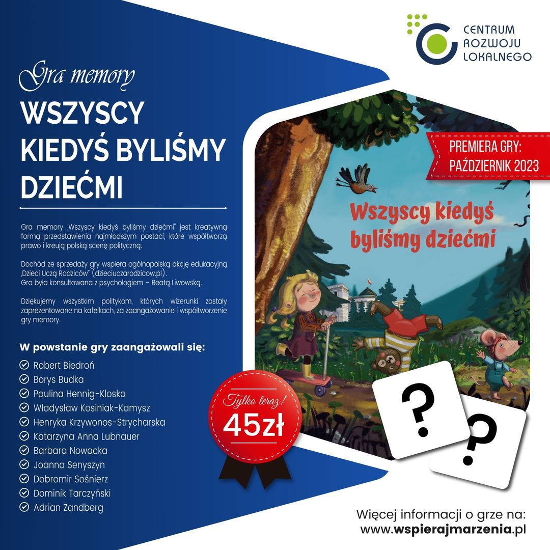 Gra memory „Wszyscy kiedyś byliśmy dziećmi” to pomysłowa próba przedstawienia najmłodszym obywatelom Polski świata polityki. 11 przedstawicieli polskiej sceny politycznej, reprezentujący wszystkie największe ugrupowania polityczne w Polsce, zgodziło się zostać bohaterami gry, jakiej jeszcze nie było.