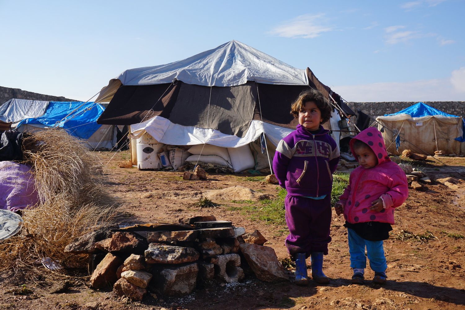Namioty, które zostały ustawione jako tymczasowe schronienie, stają się domem na lata. Życie zorganizowane jest wzdłuż szerokich alejek, prowadzących do najważniejszych miejsc – toalet, studni czy punktów dystrybucji żywności. Zimą zmieniają się one w sięgające kostek brudne strumienie. Ciepłe ubranie i nieprzemakające buty to podstawa – w skromnych warunkach każde przeziębienie może zakończyć się zapaleniem płuc i poważnymi powikłaniami zdrowotnymi.