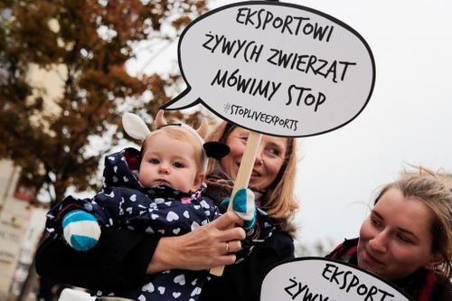 Happening „Krowa w trasie”, w ramach kampanii na rzecz zakończenia eksportu żywych zwierząt