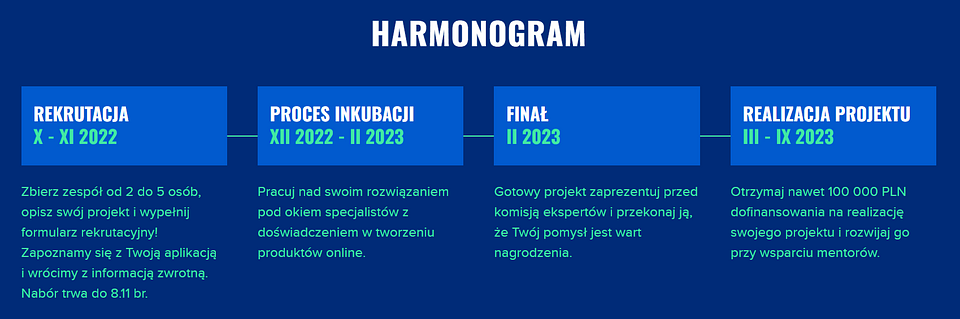 Najlepsze zespoły mogą uzyskać do 100 000 złotych finansowania na dalszy rozwój projektów oraz wsparcie mentorów. Zanim jednak to nastąpi, na zakończenie trzymiesięcznej pracy uczestnicy Funduszu zaprezentują swoje projekty przez Komisją Ekspertów, która zdecyduje o przyznaniu dotacji. W jej skład weszli m.in. Mirosław Czyżewski z Polsko-Amerykańskiej Fundacji Wolności, Jacek Królikowski z Fundacji Rozwoju Społeczeństwa Informacyjnego, Bartosz Borowiec z Deloitte Digital oraz Katarzyna Królak-Wyszyńska z firmy Innovatika.