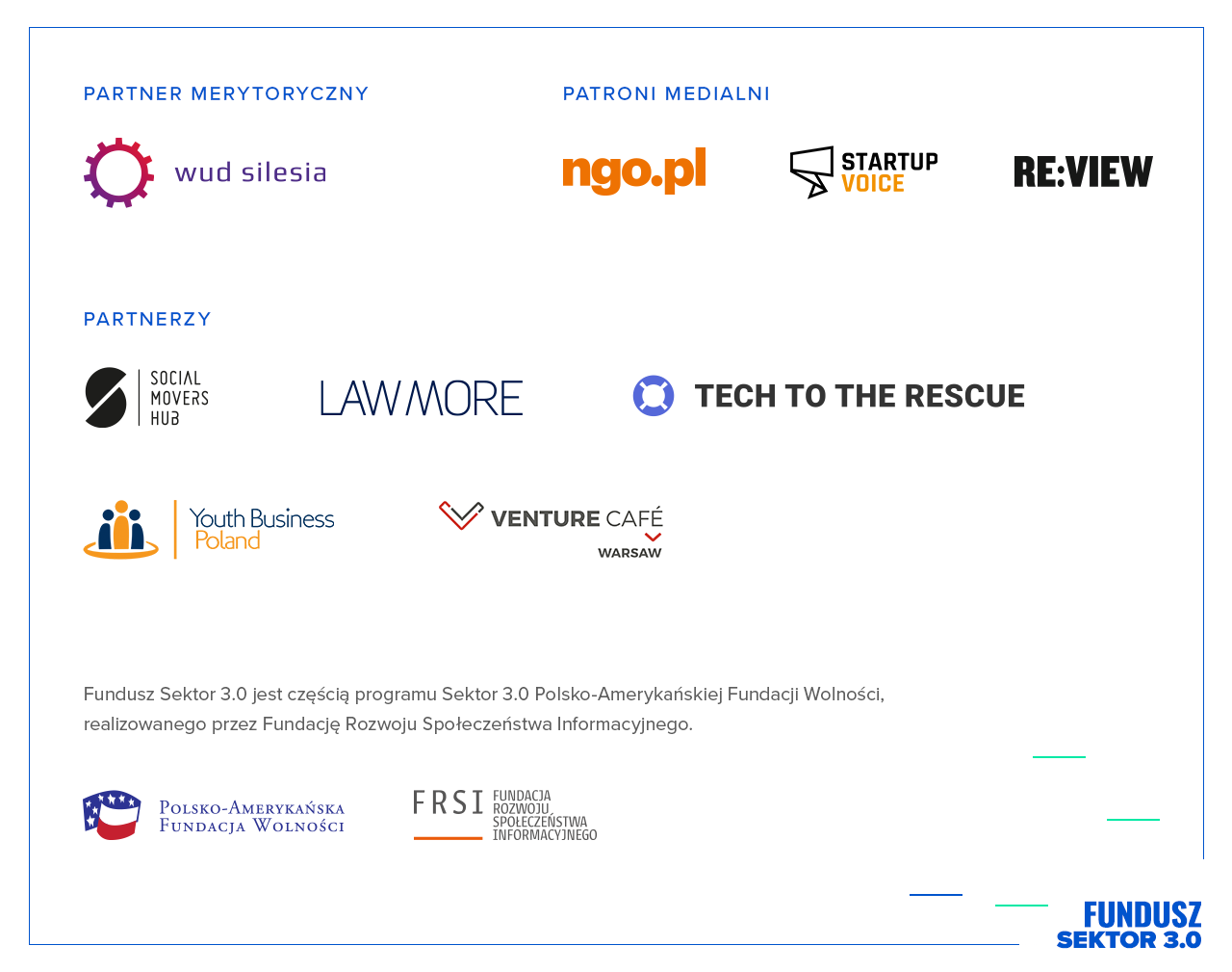 Partnerzy: LAWMORE, Social Movers Hub, Tech To The Rescue, Fundacja Venture Cafe Warsaw, Youth Business Poland