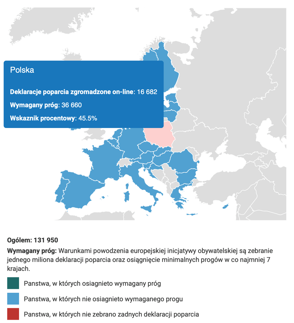 „Po zaledwie 2 tygodniach od rozpoczęcia akcji w Polsce mamy już ponad 45% wymaganych dla naszego kraju podpisów! To pokazuje, jak duże poparcie mają postulaty petycji i daje nam nadzieję na to, że jej adresat - Komisja Europejska zajmie się trybie pilnym pracą nad wprowadzeniem ich w życie” - mówi Cezary Wyszyński.