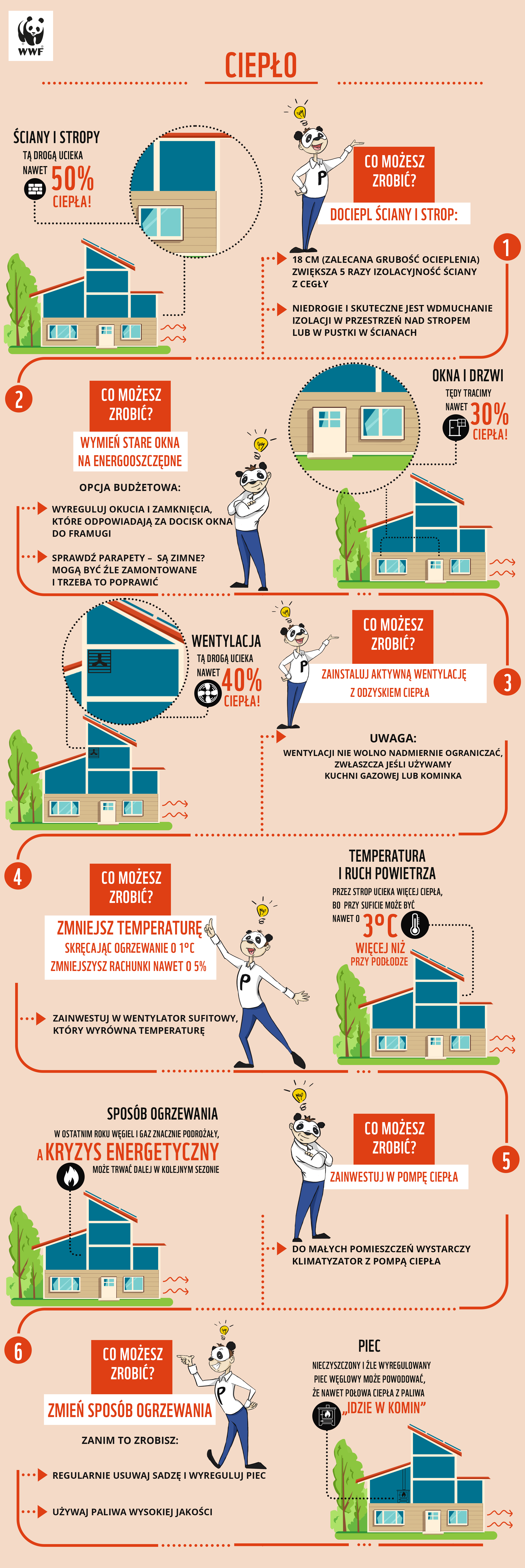 „Całkowita modernizacja ogrzewania i ocieplenia domu może zmniejszyć zużycie energii na ogrzewanie o ok. 75%-80%. Wiąże się z dużym kosztem, ale można ją rozłożyć na etapy i skorzystać z dofinansowania. Takie działanie przysłuży się zarówno naszemu portfelowi, jak i planecie. Nieefektywne energetycznie domy, z których ucieka ciepło, przyczyniają się do wzrostu emisji gazów cieplarnianych, pogłębiając kryzys klimatyczny” – dodaje Marcin Kowalczyk, ekspert ds. polityki klimatycznej w WWF Polska.