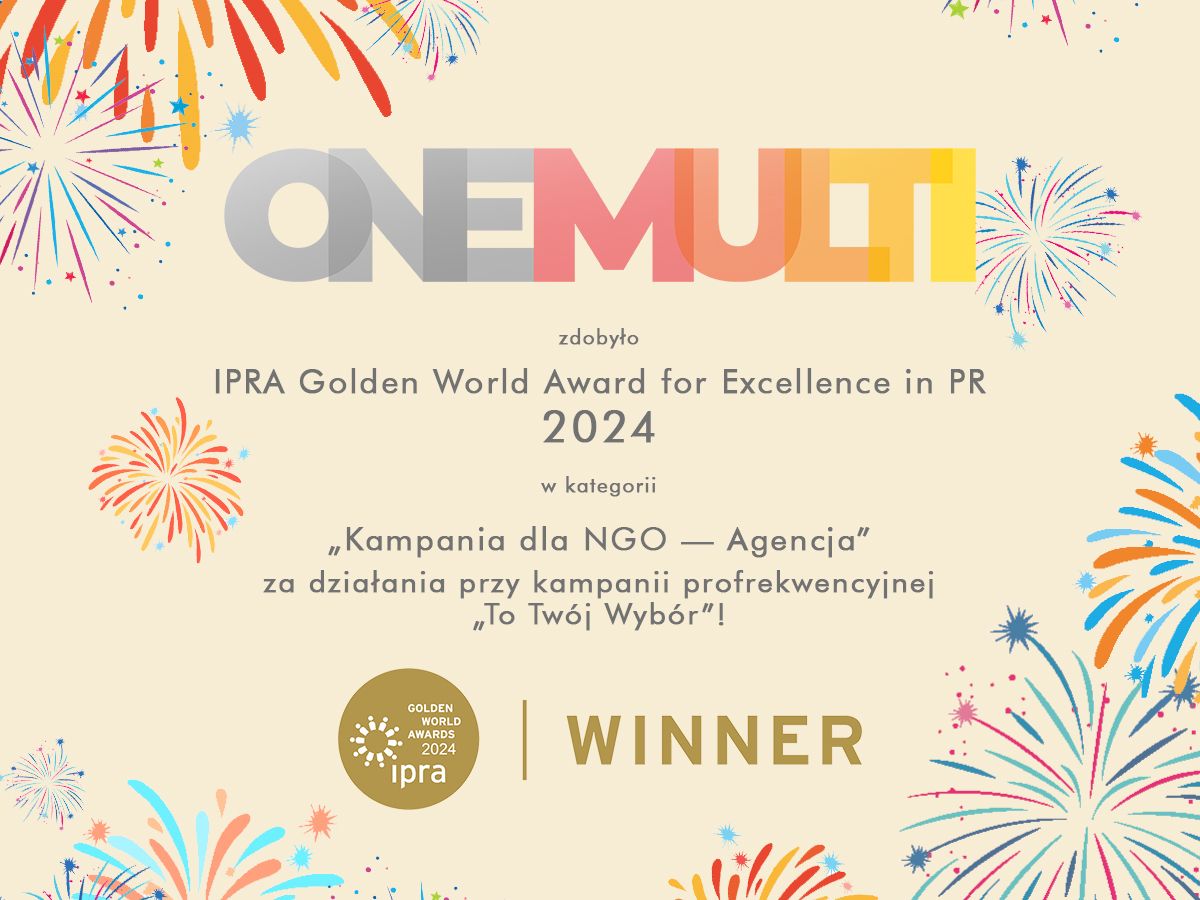 Jury międzynarodowego konkursu przyznało OneMulti nagrodę IPRA Golden World Awards for Excellence in PR 2024 w kategorii „Kampania dla NGO — Agencja” za działania przy kampanii profrekwencyjnej „To Twój Wybór”. Agencja realizowała projekt w zakresie działań komunikacyjnych i PR. Przedsięwzięcie zainicjowały Fundacja Batorego i Inicjatywa Głos Kobiet.