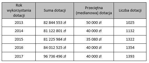 Jednocześnie z roku na rok wzrastała liczba przyznawanych dotacji – bez względu na to, czy ogólna pula środków na dotacje rosła, czy też malała. Obserwowana w ostatnich latach zmiana w tym resorcie polega więc na przyznawaniu większej liczby dotacji, ale o mniejszych kwotach. Przeciętna kwota dotacji w 2017 roku wynosiła 40 tys. zł, czyli o 10 tys. zł mniej niż w 2013 roku, kiedy to Ministerstwo przeznaczyło na otwarte konkursy ofert dla NGO o ok. 13 mln zł mniej niż w 2017 roku.