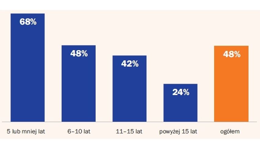 Składy zarządów organizacji charakteryzuje raczej niewielka zmienność. Średnio niemal połowa (48%) członków zarządu zasiada w nim od chwili powołania organizacji do życia. Oczywiście, jest to silnie związane z tym, jak długo istnieje organizacja. W młodszych organizacjach, działających co najwyżej 5 lat, zdecydowana większość (68%) członków zarządu jest w nim od początku. W organizacjach istniejących ponad 15 lat średnio co czwarta osoba (24%) zasiada w zarządzie nieprzerwanie od momentu założenia organizacji.