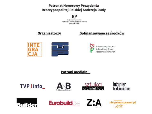 Patroni Medialni: TVP Info, Architektura&Biznes, Sztuka Architektury, Inżynier Budownictwa, Builder, Eurobuild CEE, Z:A Zawód:Architekt, niepelnosprawni.pl