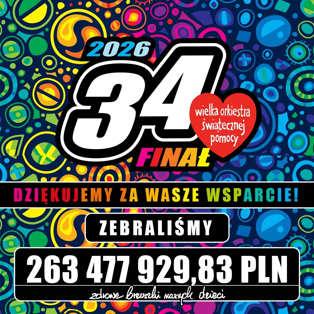 Kwota deklarowana 34. Finału to 183 231 782 zł –znalazła się na koncie dokładnie 23 lutego, czyli niespełna miesiąc po Finale. Ostateczny wynik 34. Finału to 263.477.929,83 PLN! Dziękujemy!