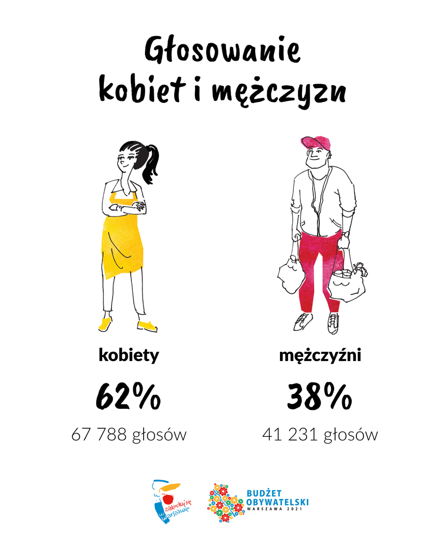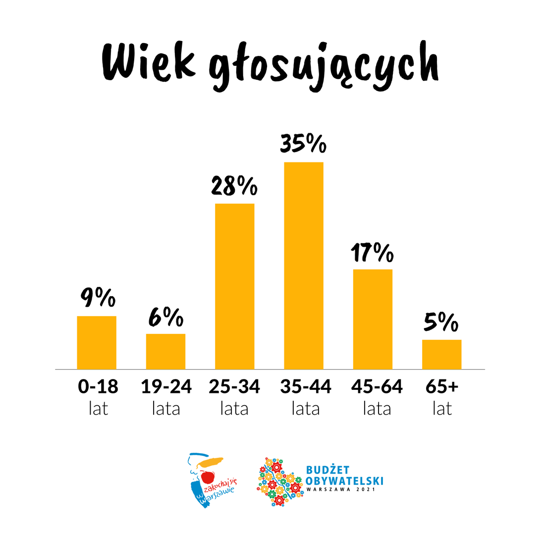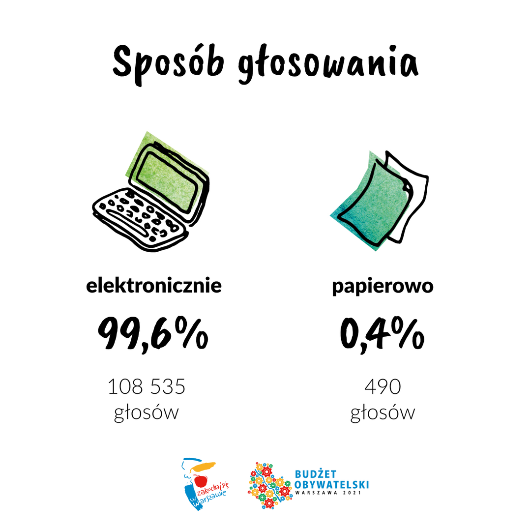 W głosowaniu wzięło udział 109 025 mieszkańców Warszawy (w 2019 r. zagłosowało ponad 105 tys. mieszkańców, a w 2018 zagłosowało ok. 90 tys. osób). Aż 99,6 proc. osób zagłosowało przez internet. Karty papierowe stanowiły zaledwie 0,4 proc. wszystkich oddanych głosów. Zagłosowało więcej kobiet niż mężczyzn (62 proc. głosujących to warszawianki, a 38 proc. - warszawiacy). Najczęściej głosowały osoby w wieku między 35 a 44 rokiem życia – prawie 35 proc. głosujących. Łączny udział grup wiekowych 25-34 lata i 35-44 lata w strukturze wiekowej głosujących stanowi aż 62,5 proc.