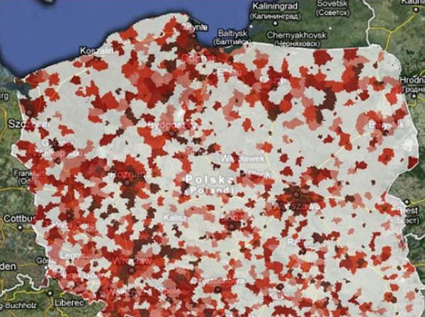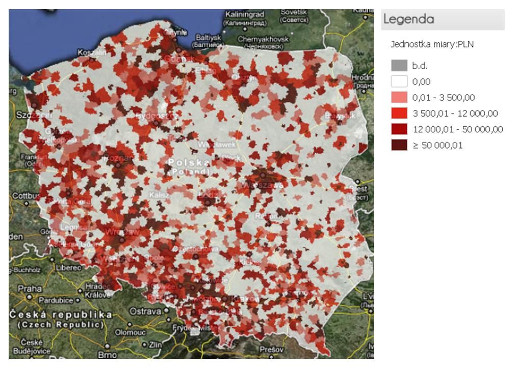 Generalnie w całej Polsce zdecydowana większość pieniędzy trafia do organizacji zlokalizowanych w miastach, zwłaszcza w tych największych, powyżej 500 tys. mieszkańców. trafiło do nich 60% wszystkich przekazanych przez podatników środków. Choć wśród OPP starających się o środki jednoprocentowe jest 17% organizacji zarejestrowanych na wsi, to trafiło do nich zaledwie 7% pieniędzy od podatników.