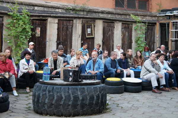 Zapomniane podwórko do wyburzenia, przez lato stało się miejscem wydarzeń artystycznych. Były pokazy tańca z ogniem, spektakle, koncerty, nawet cyrkowcy „Zirkobaja”, kuglarze. Ulotki i plakaty rozlepiane na mieście. Wieść roznosiła się pocztą pantoflową.