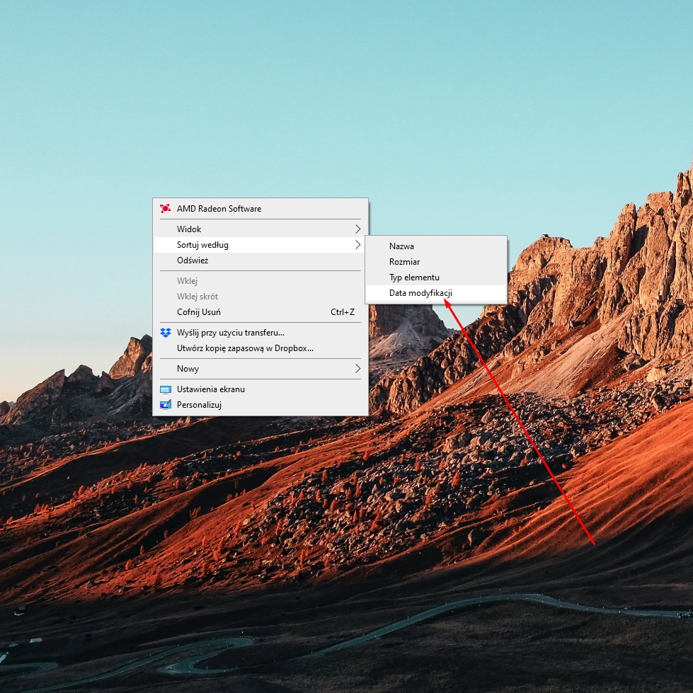 1. Możemy zacząć od przejrzenia plików, sortując je według daty. W tym celu klikamy prawym przyciskiem myszy na pulpicie i wybieramy „Sortuj według > daty”. W ten sposób nasze pliki zostaną ustawione od najnowszego w lewym górnym rogu. Idąc w dół kolejnymi kolumnami będą sortowane do najstarszego. Ponowne wybranie sortowania plików na pulpicie według daty, odwróci ich kolejność: od najstarszego w lewym górnym rogu, po najnowszy na samym końcu listy plików. Które ustawienie przyda się bardziej, musimy zdecydować sami. Tak logicznie posortowane pliki możemy zacząć przeglądać, archiwizować, lub jeżeli uznamy, że kompletnie ich nie potrzebujemy, usunąć.