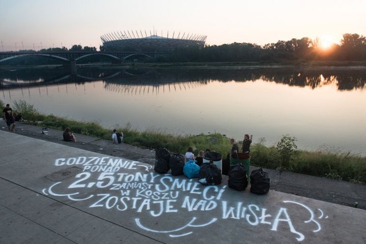 Osiem butelek, dwadzieścia cztery kubki i dwadzieścia niedopałków – takie białe obrazki, pojawiły się na bulwarach wiślanych. W noc z 21 na 22 lipca artyści, podążający za sprzątającą służbą brzegową, zilustrowali liczbę znalezionych odpadów, które nie trafiły do kosza. Napisy wykonane kredą powstały na odcinku, który jest najchętniej odwiedzany przez warszawiaków nocą - od mostu Poniatowskiego do Płyty Desantu. Ten edukacyjny happening nawiązywał do kampanii działającej pod hasłem „To się nosi nad Wisłą”.