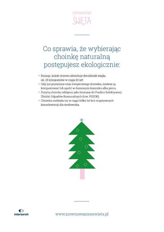 Choinka w donicy, a może… z wypożyczalni lub stworzona własnoręcznie z tektury? Ozdoby z recyklingu? Warto rozważyć takie scenariusze pamiętając, że każde żywe drzewo absorbuje ok. 25 kg dwutlenku węgla w ciągu 10 lat. Poradnik o ekologicznych Świętach przygotowała INTERSEROH Organizacja Odzysku Opakowań.