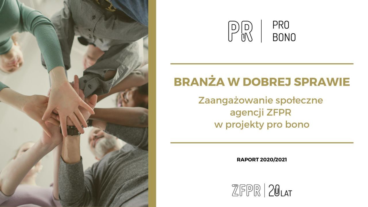 - I wreszcie – już po raz drugi ZFPR publikuje specjalny raport podsumowujący najciekawsze inicjatywy, jakie agencje zrealizowały non profit. Pierwszy raport ZFPR Pro Bono, który prezentował aktywności z 3 lat (2016-2019), objął w sumie 30 przykładowych projektów,