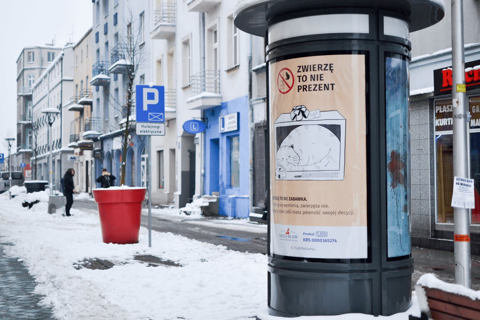 „Do użytku tylko pod nadzorem osoby dorosłej” – taki napis można zobaczyć na wielu produktach. Teraz jest także akcentem akcji mającej pomóc zwierzętom. Wydawało się, że czasy, kiedy psy, koty czy króliki stawały się prezentami, już minęły. Ale jesteśmy „nieprzemakalni” i nadal trzeba nas uczyć. Stowarzyszenie opieki nad zwierzętami „Nadzieja na dom” w najnowszej kampanii billboardowej przestrzega przed kompulsywnym kupowaniem zwierząt, które po świętach często są porzucane i trafiają do schronisk.